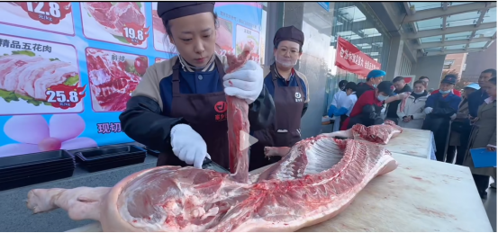本次競(jìng)賽以“精工細(xì)作、匠心傳承”為主題,通過(guò)抽簽分組的形式,8支隊(duì)伍兩兩對(duì)決,歷經(jīng)4輪激烈比拼。選手們需計(jì)時(shí)中完成鮮肉分割,后續(xù)階段邊講解邊精分割、逐一擺盤展示及標(biāo)準(zhǔn)化流程操作,評(píng)委組從分割效率、刀工精準(zhǔn)度、產(chǎn)品美觀度及衛(wèi)生規(guī)范等多維度嚴(yán)格評(píng)分。賽場(chǎng)上,參賽選手手法穩(wěn)健嫻熟,精準(zhǔn)把控每一刀的分寸,展現(xiàn)出扎實(shí)的專業(yè)功底與默契的團(tuán)隊(duì)配合。現(xiàn)場(chǎng)觀眾掌聲不斷,更有市民駐足圍觀,直呼“大開眼界”。