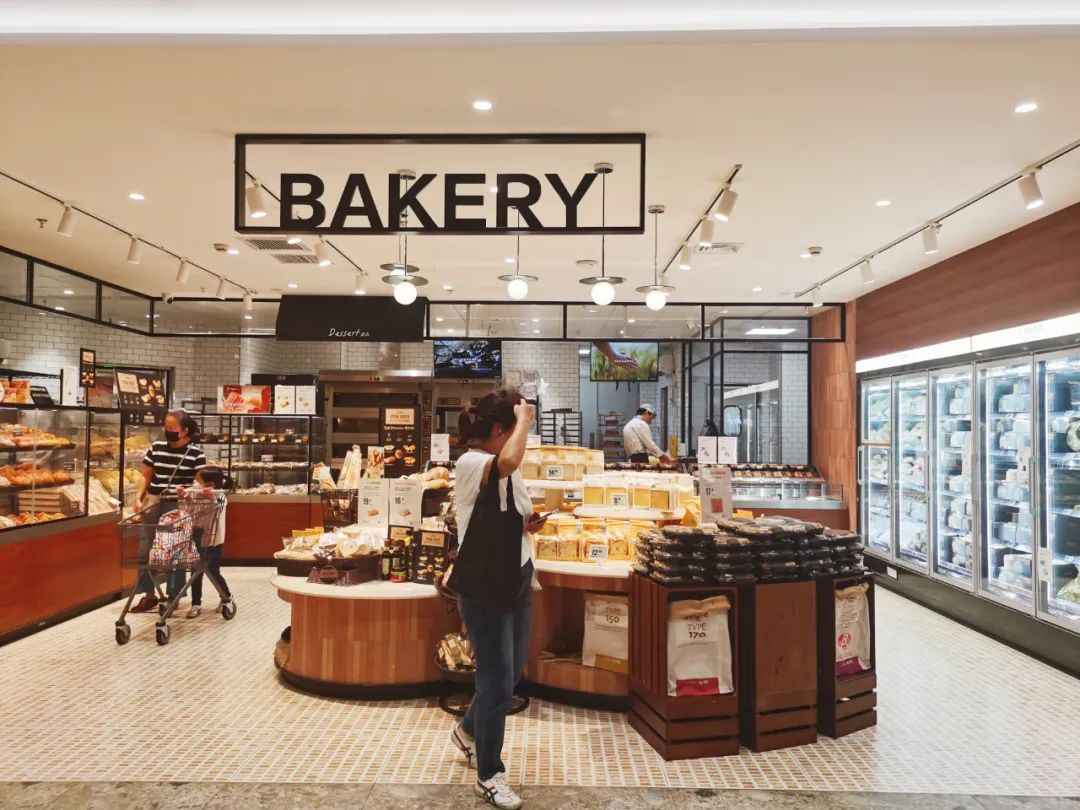 分品類看,烘焙品類,通常用暖色系的色調(diào)去打造。另外考慮到很多面包為現(xiàn)烤,需要快速銷售出去,所以,商品的亮度更強(qiáng)、環(huán)境光更弱,突出商品色澤,提高動銷概率。