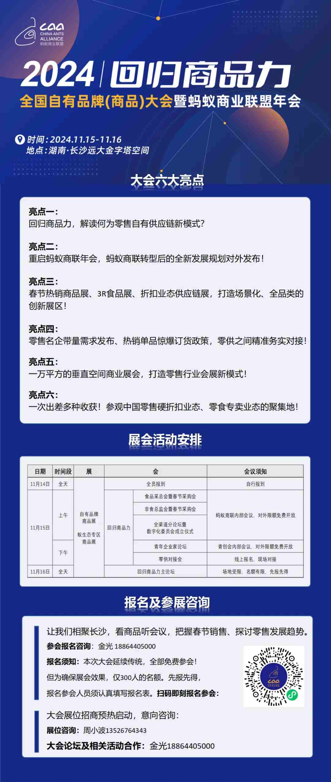 11月15日,讓我們相聚長沙,看商品聽會議,把握春節(jié)銷售、探討零售發(fā)展趨勢,本次大會延續(xù)傳統(tǒng),全部免費(fèi)參會!但為確保展會效果,僅有300人的名額,先報先得,報名參會人員須認(rèn)真填寫報名表。掃描下圖二維碼即刻報名參會↓↓↓
