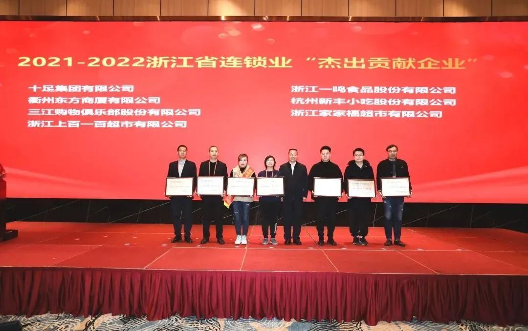 大會對浙江省優(yōu)秀連鎖企業(yè)進(jìn)行了表彰。螞蟻商聯(lián)成員企業(yè)三江購物俱樂部股份有限公司、浙江上百一百超市有限公司、浙江家家福超市有限公司榮獲2021-2022浙江省連鎖業(yè)“杰出貢獻(xiàn)企業(yè)”獎項(xiàng)。