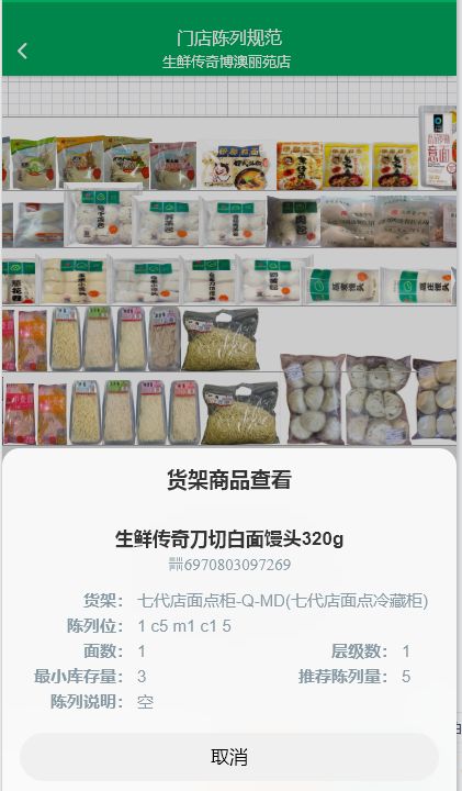 生鮮傳奇建立了許多標(biāo)準(zhǔn),第一個(gè)就是我們?cè)谏唐返呐锔畋?,大家可以看到這張圖,這是我們把所有的商品都數(shù)字化,在我們的系統(tǒng)里面建立了商品的陳列圖,門(mén)店只需要按照陳列圖去陳列就可以了。