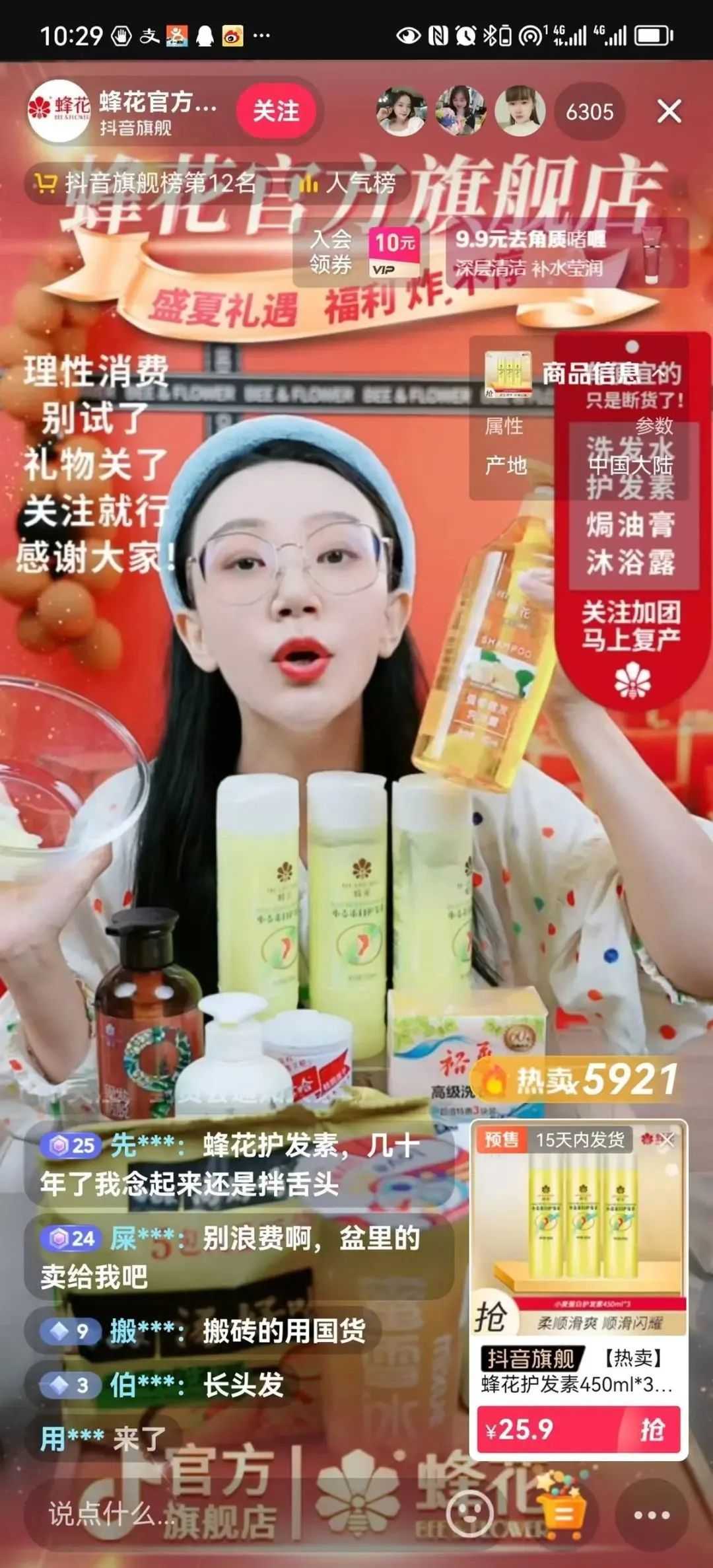 從9月11日之后,蜂花連續(xù)直播了95個(gè)小時(shí)。就在這95小時(shí)內(nèi),新增粉絲276萬(wàn),平均一個(gè)小時(shí)3萬(wàn)。直播銷(xiāo)售額,超過(guò)2500萬(wàn)元。緊接著這件事就變成了國(guó)貨品牌的集體狂歡。蜂花直播兩天后,郁美凈在抖音注冊(cè)了賬號(hào),短短3天,粉絲超過(guò)120萬(wàn),直播銷(xiāo)量超過(guò)10萬(wàn)單。活力28幾乎同步加入,4天直播12場(chǎng),銷(xiāo)售額超過(guò)1400萬(wàn)元。同時(shí)參加這一輪直播的,還有老干媽、大白兔、隆力奇、蓮花味精、白玉牙膏、鴻星爾克、上海硫磺皂、南方黑芝麻糊等等。