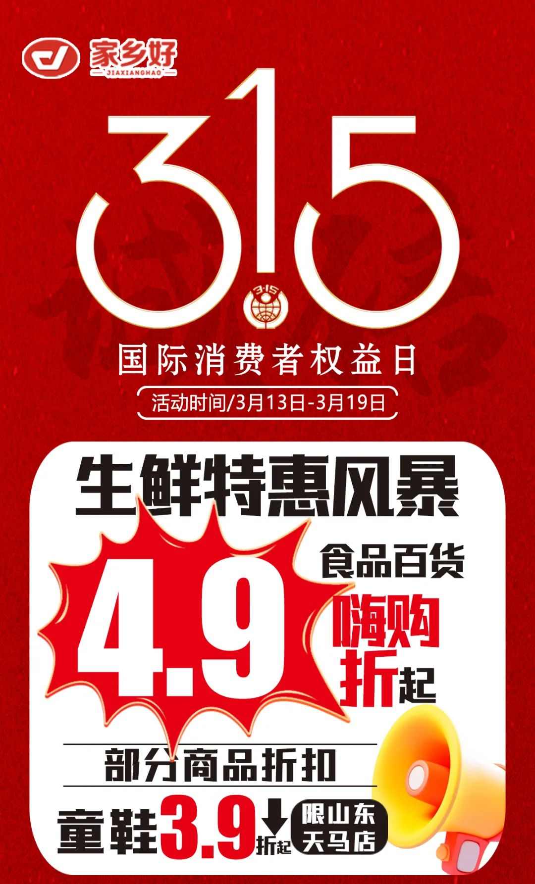 【家鄉(xiāng)好超市】市區(qū)店 |3月13日至3月19日家鄉(xiāng)好315 品質(zhì)護航,為您嚴選每一份安心,精選好物惠全城!