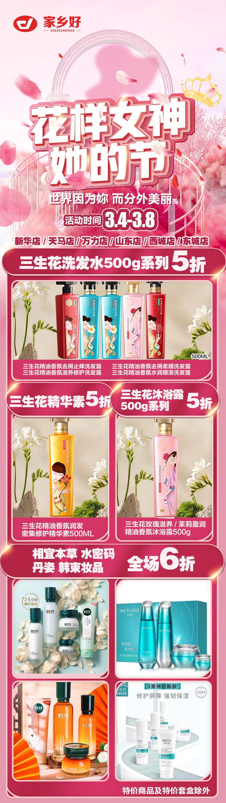 【家鄉(xiāng)好超市】市區(qū)店| 花樣女神 · 她的節(jié) 洗護(hù)3.4-3.8暖心特惠低至5折起,不做灰姑娘 拉著姐妹們亮起來(lái)~~