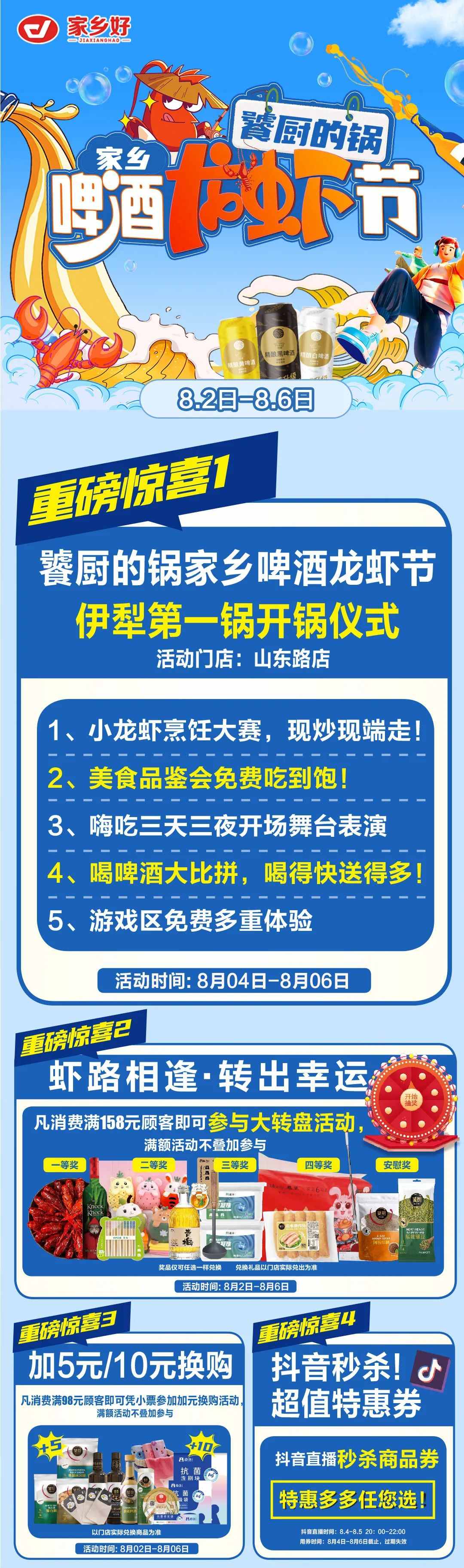 【家鄉(xiāng)好超市】市區(qū)店|饕廚的鍋·家鄉(xiāng)啤酒龍蝦節(jié)夏日狂歡季 嗨吃小龍蝦!更多重磅福利震撼來襲!
